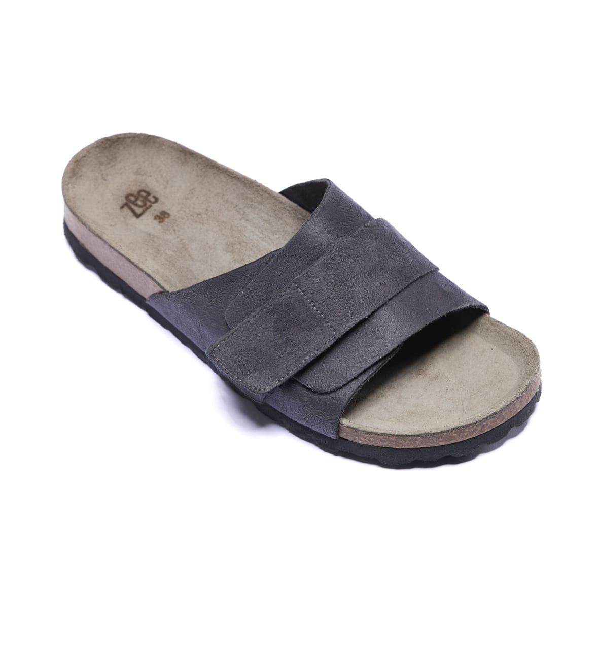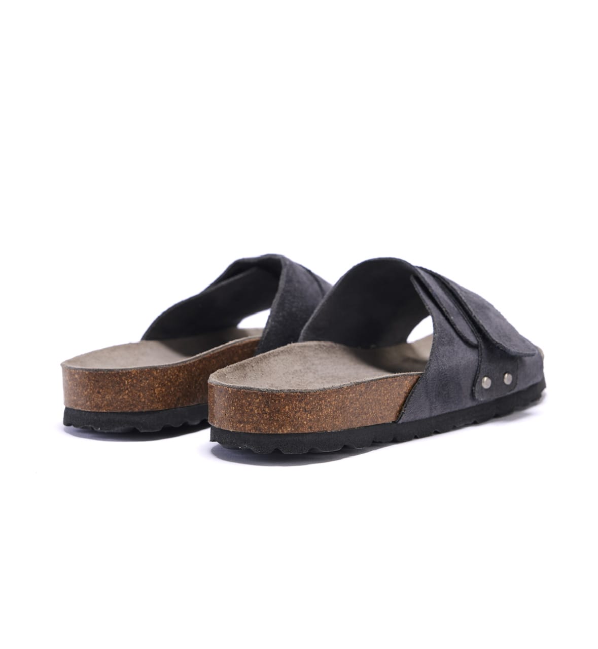 BONNIE is a suede sandal designed for everyday comfort with a personalized fit. Built on a Spanish cork-latex footbed, it adapts naturally over time for improved support.