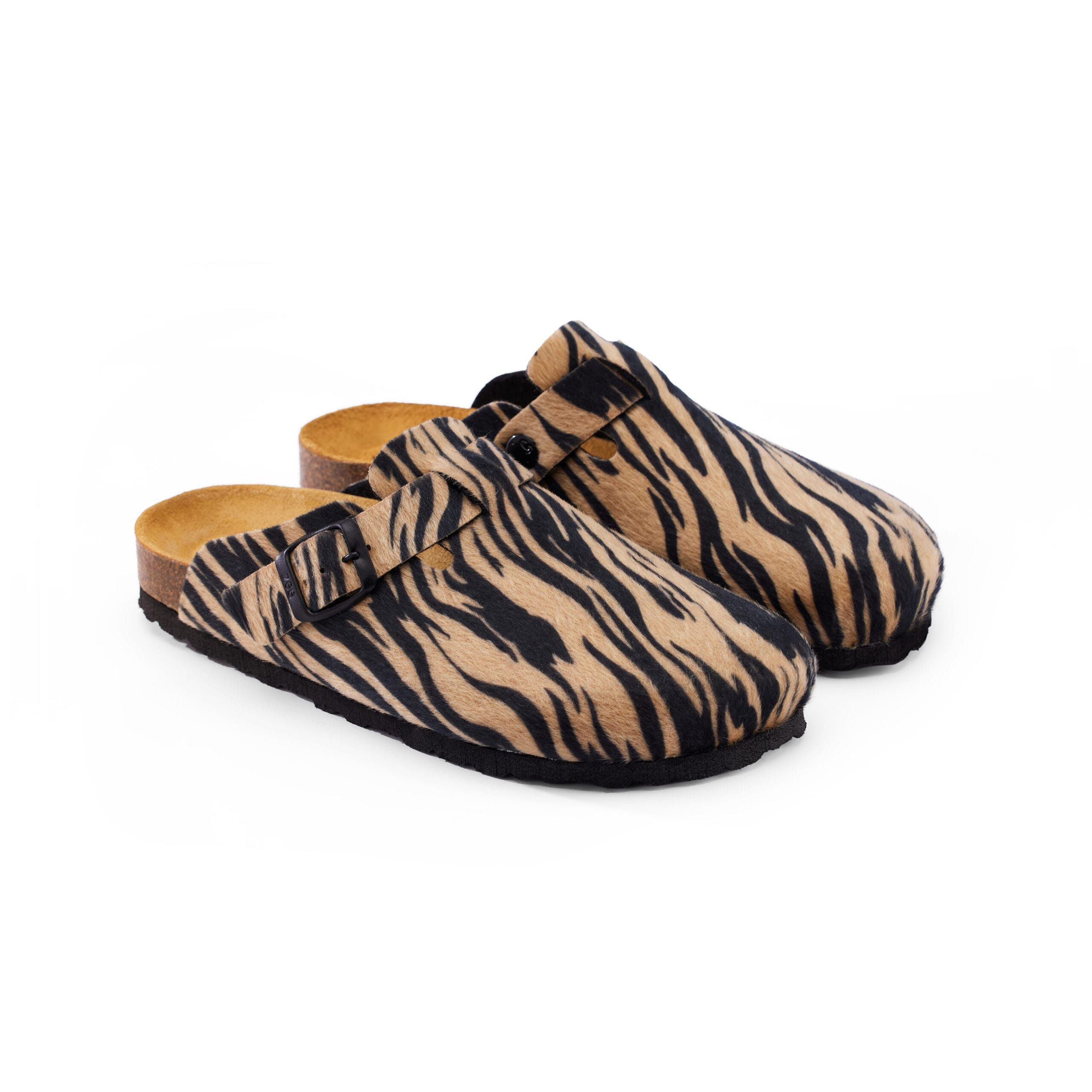CALIDA-CEBRA is a patterned clog designed for everyday comfort with a bold, fashion-forward edge. Crafted from premium synthetic leather featuring a distinctive zebra pattern, this design adds standout texture while remaining easy to wear. Built on ZEE???s original Spanish natural cork footbed and finished with a lightweight Spanish EVA sole, CALIDA-SAHARA delivers ergonomic support and balanced comfort throughout the day.