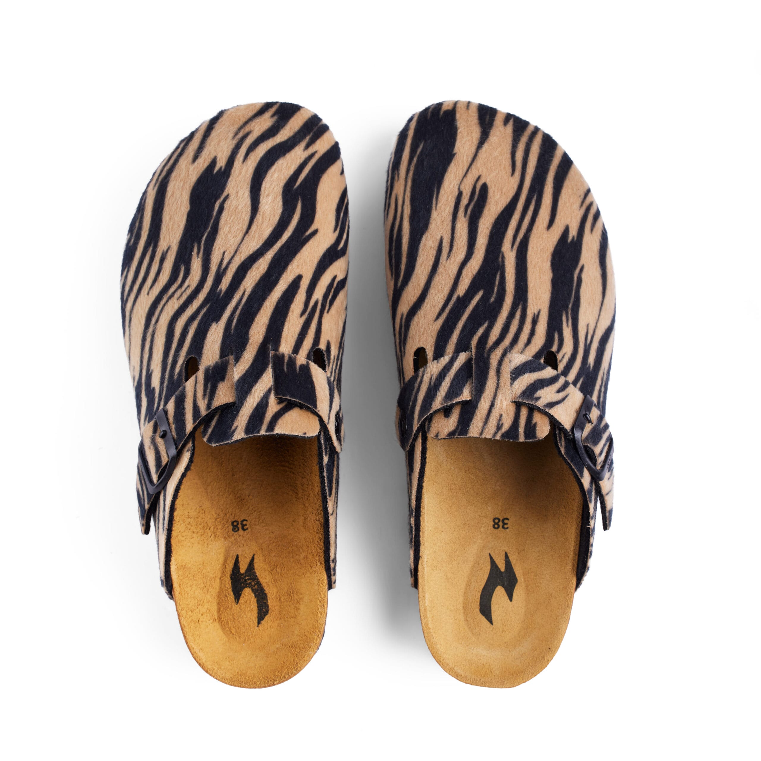 CALIDA-CEBRA is a patterned clog designed for everyday comfort with a bold, fashion-forward edge. Crafted from premium synthetic leather featuring a distinctive zebra pattern, this design adds standout texture while remaining easy to wear.