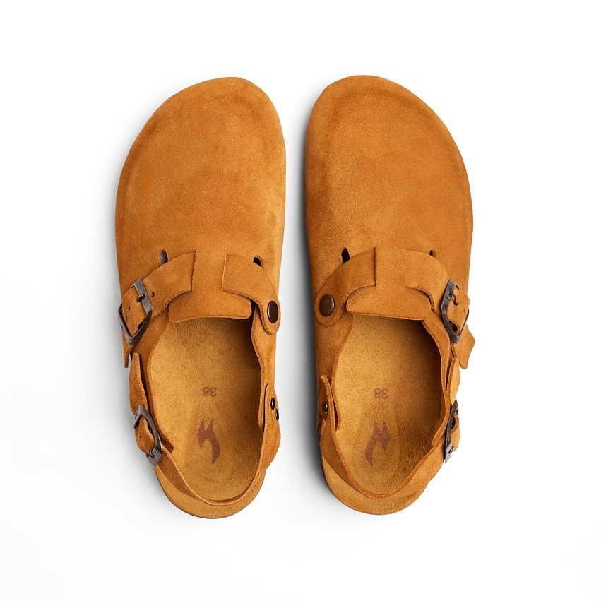 CALIDA-SANDAL is a suede sandal designed for everyday comfort and casual wear. Built on a contoured Spanish cork footbed, it offers support with a relaxed feel.