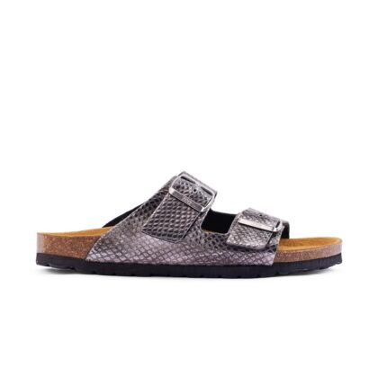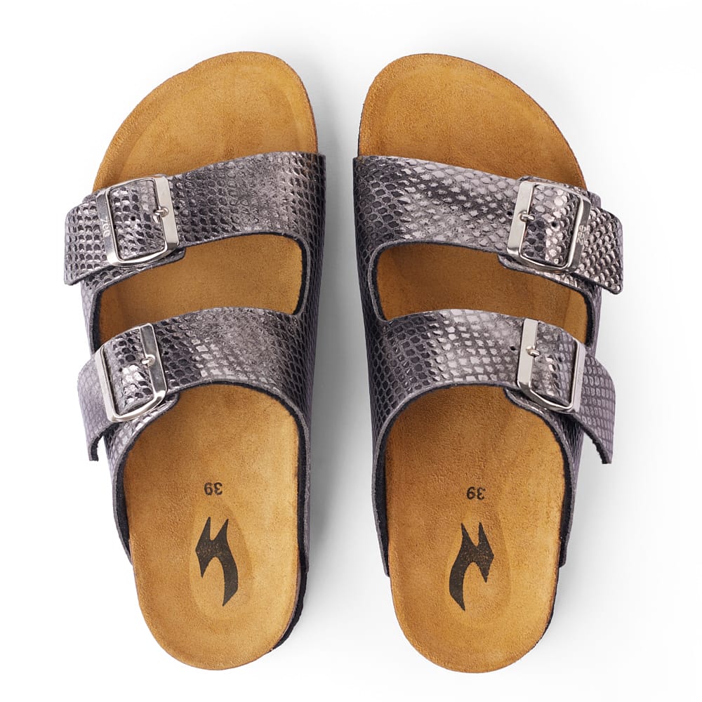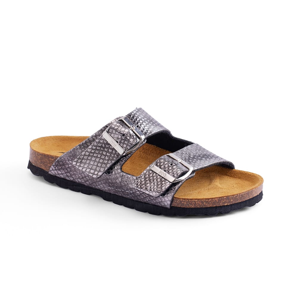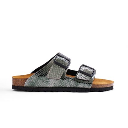 GRANDE-TODO-PYTHON is a sandal designed for everyday wear with a bold look. Built with premium python-pattern leather and a Spanish cork footbed, it provides support and comfort.