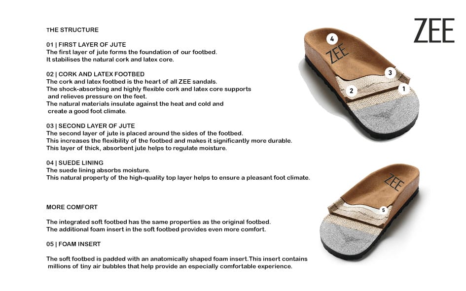 • Spanish natural cork footbed