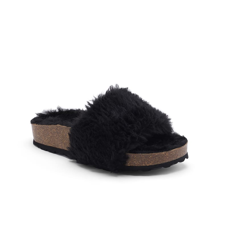 TRANQUILA is a cozy slipper designed for indoor and casual outdoor comfort. Built with a plush upper and Spanish cork sole, it offers warmth and support.